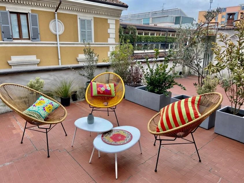 Questo delizioso mini attico con magnifico terrazzo e’ situato in via Tortona 26, in un caratteristico edificio milanese dei primi del ‘900.